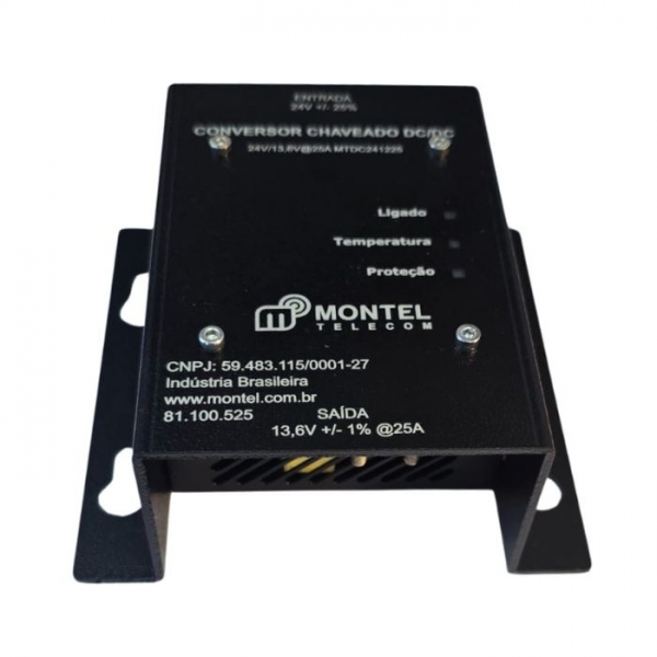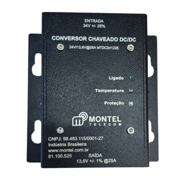 O MTDC241225 é um conversor chaveado DC/DC do tipo Buck, desenvolvido para rebaixar a tensão de entrada de 24 Vdc para 13,6 Vdc. Ele é projetado para fornecer energia estável e confiável em aplicações críticas de telecomunicações e rádio-comunicação. Utiliza tecnologia de comutação com MOSFETs de alta eficiência, transformador de ferrite em alta frequência e controle PWM (modulação por largura de pulso). Possui ainda microcontrolador responsável pelas proteções inteligentes..